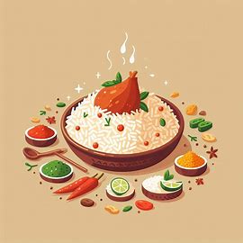 ビリヤニは、肉、魚介類、野菜など、さまざまな具材で作られます。チキンビリヤニやマトンビリヤニが特に人気ですが、ベジタリアンビリヤニも広く親しまれています。地域によっては、エビや魚を使ったシーフードビリヤニも一般的です。具材の選択は、地域の食文化や宗教的背景に大きく影響されます。たとえば、イスラム教徒の多いパキスタンやバングラデシュでは、牛肉や鶏肉が好まれ、ヒンドゥー教徒の多いインドの一部地域ではベジタリアンビリヤニが一般的です。ビリヤニの多様性は、具材の選択肢の広さに表れており、家庭やレストランごとの個性も楽しめます。