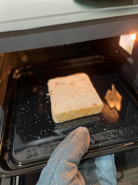 ①はじめに食パンを角皿の中央にのせ、セットします。