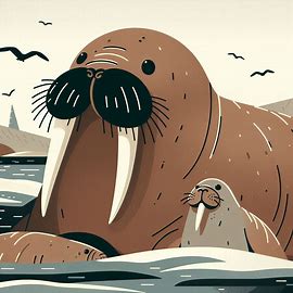 セイウチの子(カーフ)は、生後すぐに泳ぐ能力を持ちますが、母親の保護が不可欠です。母親は子を海氷や陸上に連れて行き、授乳を行います。セイウチの母乳は脂肪分が30~50%と非常に濃厚で、子の急速な成長を支えます。子は生後数週間で体重が倍になり、約2年間、母親と密接に過ごします。この期間、子は泳ぎや潜水の技術を学び、母親は子を守るために捕食者や他のセイウチから積極的に防御します。たとえば、ホッキョクグマが近づくと、母親は牙を使って威嚇し、子を水中に逃がす行動が見られます。子育て期間は、母親にとって大きなエネルギー負担ですが、セイウチの種の存続には欠かせません。子が自立する頃には、成獣とほぼ同じ摂食技術を身につけ、独立して餌を探せるようになります。母親と子の絆は、セイウチの社会構造の中で特に強いものであり、群れ内での協調行動にも影響を与えます。研究では、子が母親の採餌場所を学習することで、効率的な餌探しの技術を継承する可能性も示唆されています。